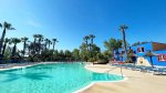 Two fully equipped toilet blocks provide good facilities including for babies and children. En-suite accessible unit. Laundry facilities. Shop. Restaurant, bar and takeaway café (all season). Attractive pool complex with sliding cover for heated pool, larger outdoor pool with slide and paddling pool. Gym. Play area. Tennis (30/6-30/8). Multisports court. Mini Golf, Bouncy castle, Playing field. Kind club. Activities and entertainment organised in high season. WiFi. Communal and gas barbecues only.