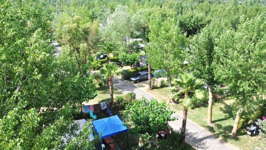 A shaded haven, l’Air Marin is set back beside the Canal du Midi, away from the busy hectic centre of Vias-Plage. It is a good site for families, regularly laid out with a degree of individuality and some distinctive sculptures, including decoratively tiled water points. The facilities are to one side and form the core of the site, attractively arranged overlooking the pool complex. Flowering shrubs separate the 150 pitches for chalets and mobile homes to let, while the 150 level grass places for touring units are more open among tall trees and occasional shrubs. All have 6A electricity. The site opens quite early in the season compared with some in the area, with all facilities also said to be open all season.