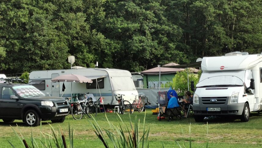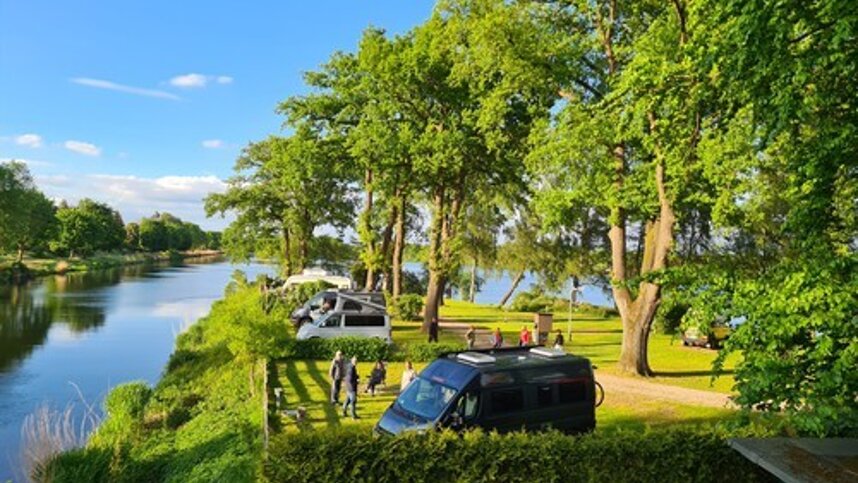 Much of the site is devoted to holiday units, but there are 25 touring pitches on hardstanding (all with 16A Europlug, water and drainage) plus 25 tent pitches. Many occupy prime locations overlooking the canal or the lake. Anglers will be in their element here as they can sit outside their van or tent and fish, while walkers and cyclists can head off on the Alte Salzstrasse cycle path.