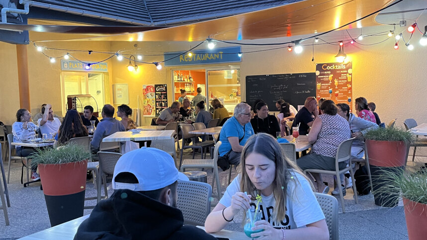 Two modern toilet blocks provide unisex toilets, showers and washbasins in cubicles. Baby room. Accessible facilities recently improved. Laundry facilities. Motorhome services. Shop, bar, restaurant and takeaway (all season). Outdoor swimming pool with slide and new terrace (no Bermuda-style shorts; 1/5-15/9). Heated, covered pool (all season). Fitness room. Small play area. Games area. Boules. TV room. Bicycle hire. Internet access. WiFi throughout (charged). Footpath to village.