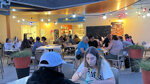 Eatingfitted kitchen with hobs, microwave, coffee maker, fridge