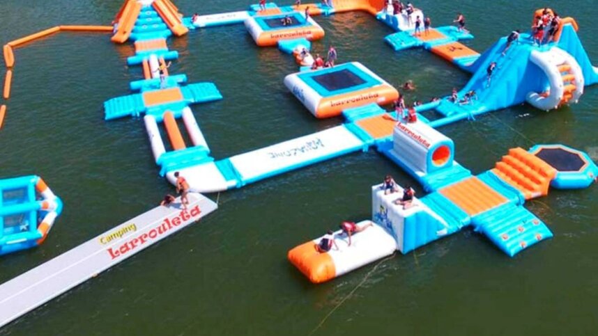 Larrouleta is located 3 km from the sandy beaches at Socoa and St Jean de Luz, and given its relative proximity to the A63 motorway, may be a useful overnight stop en route to Spain - just 8 km away. However, it is also very convenient for exploring Hendaye and Saint Jean-de-Luz (bus stop 200 m. from the site). The Pyrenees are also close at hand and, of course, provide some unrivalled walking and cycling opportunities. The site has its own 2.5 hectare private lake complete with sandy beach for swimming, fishing, paddle boating or just soaking up the sunshine in peace. During summer children will enjoy the aquatic games on the lake which are free for campers.