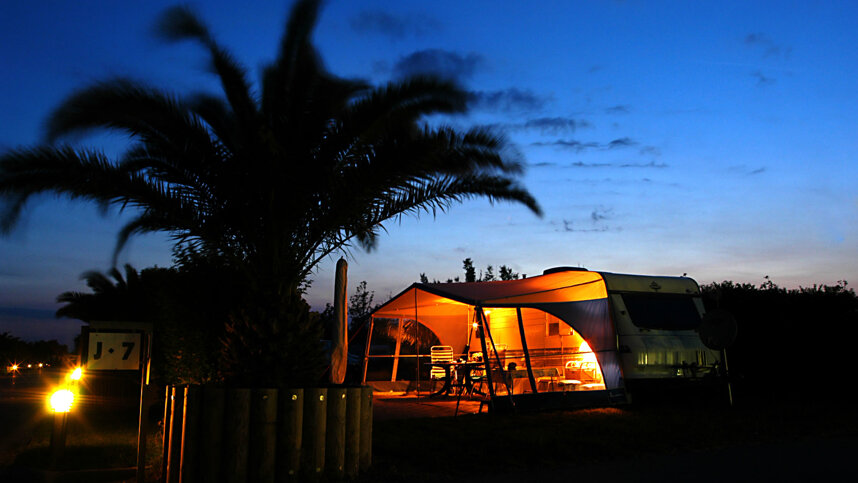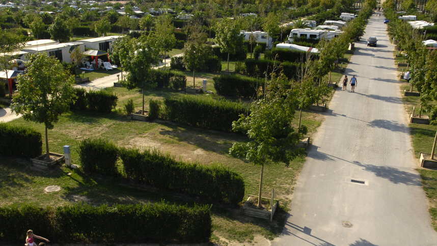 Pitches are usually available, even in the main season. Much effort has gone into planting palms and new trees here and the results are very attractive. The large restaurant and bar have spacious terraces overlooking the swimming pools or you can enjoy a very pleasant, more secluded, cavern-style pub. A magnificent disco club is close by in a soundproofed building (although people returning from this during the night can be a problem for pitches in the central area of the site). With free, quality entertainment of all types in season and positive security arrangements, this is a great site for families with teenagers. Everything is provided on site so you don’t need to leave it during your stay. A popular site for British rallies.