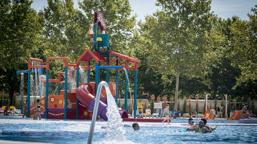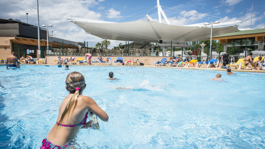 Five excellent large toilet blocks with electronic sliding glass doors. Toilets without seats, controllable hot showers and washbasins in cabins. Excellent facilities for children and babies. Accessible facilities. Laundry facilities. Motorhome services. Supermarket, boutique and other shops. Large bar with terrace. Large restaurant & takeaway. Ice cream parlour. Beach bar (seasonal). Disco club. Swimming pools. Adventure crazy golf. Playgrounds. Tennis. Minigolf. Sailing/windsurfing school and other watersports. Programme of sports, games, excursions and entertainment, partly in English. Exchange facilities. ATM. Safety deposit. Internet café. WiFi over site (charged). Dogs accepted in one section. Torches are required in some areas.