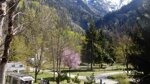 Le Champ du Moulin is in the narrow Vénéon valley at an altitude of 960 m, so the days may be hot, but the nights are cool. It is open in summer and winter and has 83 level stone and grass pitches, 65 for touring. They are delineated by various trees that offer shade, and all have electricity (6/10A, long leads useful). Rock pegs are essential.