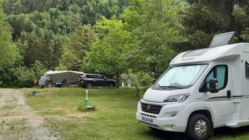 When the mountain snow melts in spring, the river beside the site changes from a trickle to an impressive torrent, so parents and dog owners need to be especially vigilant. Large units are accepted, but please book ahead. Even though the bustling town of Le Bourg-d’Oisans is only a 15-minute drive away, this peaceful campsite is enjoyed by visitors in both winter and summer. It is a good base for skiing and for exploring this beautiful region.