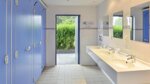The site has a single toilet block with showers, washbasins and wc’s. Motorhome service area. Laundry room with washing machine, dryer, ironing board and iron. Heated outdoor covered swimming pool. Children’s play area. Bouncy castle. Trampoline. Home Ball's area. Table tennis. Boules area. Volleyball. Badminton. Jacuzzi. Wi-Fi free. BBQ’s allowed. Restaurant. Snack bar. Bar. Small Shop. Tourist information. Bread, order the day before. Billiards. Library. Gas sales. Pets allowed.