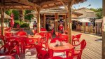 Three fully equipped toilet blocks include showers with washbasins and facilities for children, babies and accessible facilities, Dog showers. Shop, bar, restaurant and takeaway. Swimming pools. Play area. Children’s clubs (from 6 yrs). Sports activities. Family entertainment every night. Gas barbecues for hire.