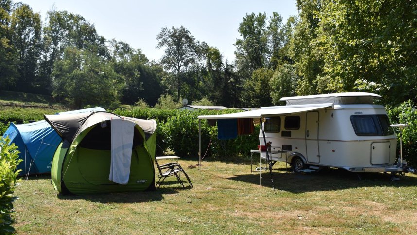 Camping Le Clupeau is a family campsite situated near the village of Cherveix-Cubas in the Dordogne region of France. The river Auvézère with its reservoir and old mill runs alongside the campsite. There are 33 touring pitches with electric hook-up points available (10Amp). The pitches are delimited by mature hedging, and mature trees offer shade during the summer. Almost half of the pitches can be found along the river, giving great views of the water.