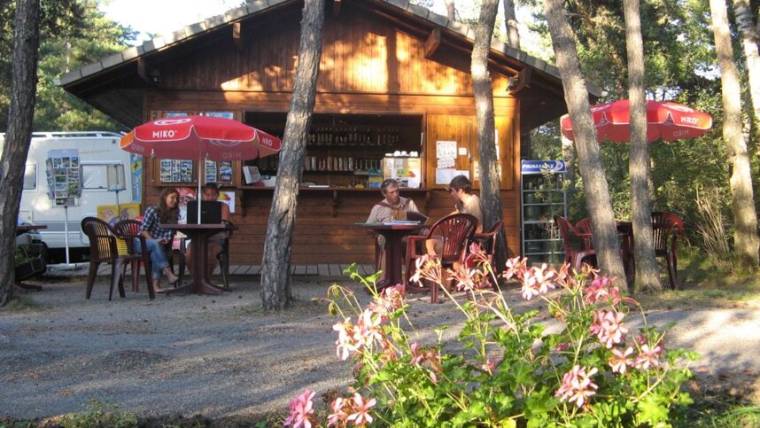 Individual toilets with hot water. Individual shower cabins with hot water. Baby cabin with bath, shower, toilet, changing table. Accessible cabin with toilet, shower and sink. Children’s toilet. Games room. TV room. Dishwashing area. Laundry with washing machine and a dryer. Microwave. Take away 01/07- 30/9. Bar 01/07-15/09. Small shop 01/07- 30/9. Pizzeria 01/07- 30/9. Bread to order. Freezer for ice packs. Dogs allowed. Dog walk. BBQ’s allowed. Children's playground, Climbing wall, Volleyball, Table tennis, Football field, two activity rooms. Crazy golf. Trampoline. Fishing. Tennis. Horse riding school. Acro-branches nearby. Golf nearby. Ice rink. Bowling. Fitness centre. Indoor swimming pool 12 km. away. Nearby (six hundred metres) Shop, Bakery, Butcher Delicatessen. Restaurant, Pizzeria. Pharmacy, Doctor.