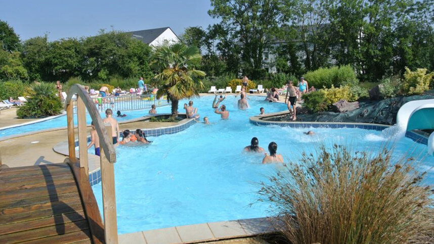 The older toilet block provides washbasins in cabins, preset hot showers with accessible facilities. The second newer block has similar facilities Laundry. Motorhome services. Large marquee contains bar, restaurant and takeaway (open all season; eves only low season). Modern heated open-air pool complex (Seasonal), small covered heated pool (all season). Tennis. Boules. Fishing. Games room. Adult fitness room. Play areas. Organised entertainment (all age groups in high season). WiFi (charged).