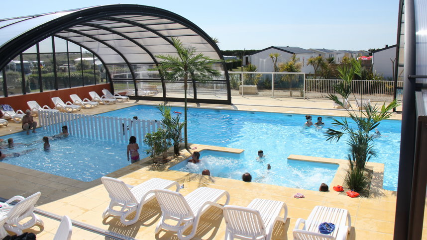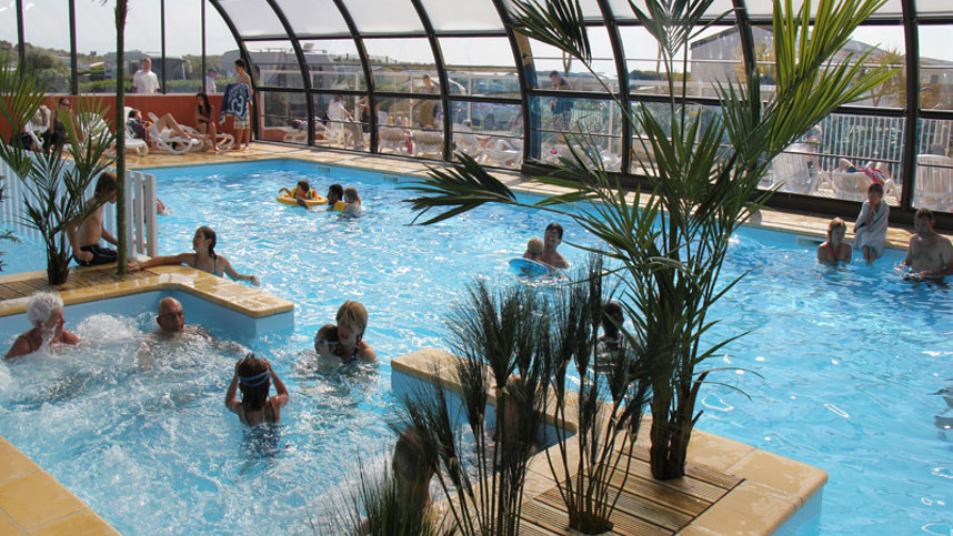 Two well-maintained toilet blocks. The main one is modern and includes washbasins in cubicles and some family rooms. Some showers and WCs have access to the outside of the building. Accessible facilities, Baby bathroom. Laundry area. Motorhome services. Shop for basics. Bar (all season). Snacks (July/Aug). Heated swimming and paddling pools (indoor all season, outdoor - seasonal). Play area. Football, Tennis. Pool table, Boules. Fishing. TV room. Some entertainment (July/Aug). WiFi over site (charged).