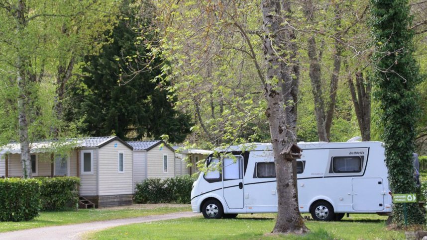 Sanitary blocks include accessible facilities and are heated when necessary. Washing machine, dryer and ironing room. Bread, pastries and basic provisions. Bar/snack bar. Heated swimming pool (15/6-15/9). Floodlit pétanque. TV room. Games room. Playground. Volleyball. Small football pitch. Table tennis, Children’s club (10/7-20/8). Organised walks. Communal BBQ area, Swimming and fishing in river. Free WiFi. Pets allowed.