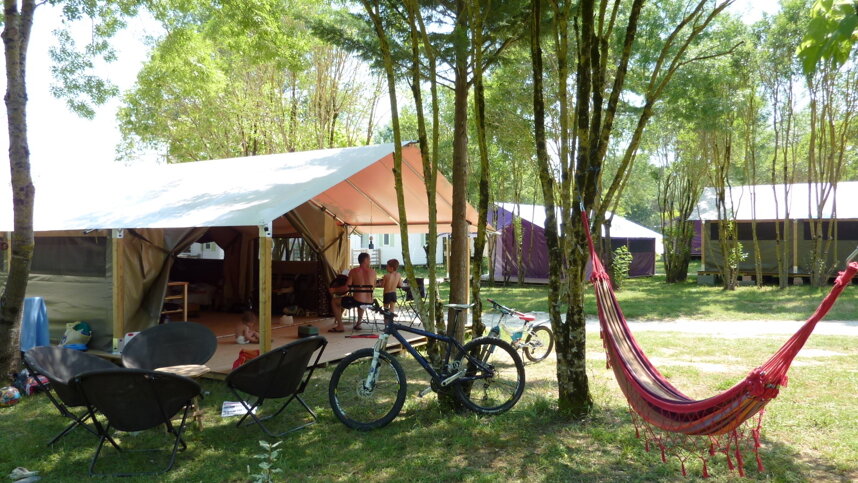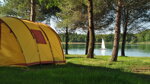One sanitary block provides all necessary facilities including a baby room and an en-suite accessible unit. Laundry facilities. Motorhome services. Shop (1/5-20/9). Bar (4/6-4/9). Snack bar and takeaway (4/6-4/9). Water park (4/6-4/9). Play area. Trampoline and multisport court. Boules. Lakeside beach (supervised July/Aug). WiFi throughout (charged).