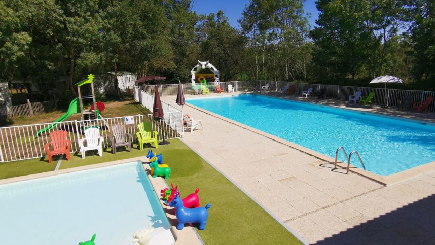 Two toilet blocks (one heated and one is closed in low season). Accessible facilities. Motorhome services. Shop. Bar. Snack bar. Restaurant (from where bread is available to order). Laundry. Heated swimming pool (July/Aug). Games room. Play area. Direct access to river. Fishing. Bicycle and canoe hire. Entertainment and activity programme (July/Aug). Tents, Trigano bungalows and chalets for rent. WiFi on part of site (charged).