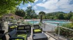 Five toilet blocks (one completely renovated) along the middle of the site provide easy access from all pitches. Accessible sanitary facilities, Motorhome services. Small shop, bar with TV (1/7-31/8) and snack type restaurant with takeaway (15/6-31/8). heated outdoor swimming pool (1/6-20/9). Children’s club in high season. Fishing and river swimming. Activity and entertainment programme. WiFi over part of site (charged).
