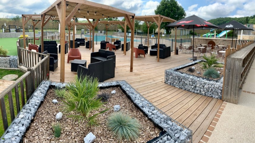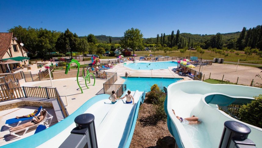 You will be guaranteed a friendly welcome from the the campsite staff who are justifiably proud of their well kept and attractive site, built in the grounds surrounding an old mill. The facilities have been continually updated and improved over the years. Most of the 176 shady pitches all have 10A electricity (102 offer full services) and are separated by hedges and shrubs. Many pitches are next to a small river that runs through the site and joins the River Ceou along the far edge. A tent field slopes gently down to the river which is quite shallow and used for swimming. This site with its superb pool complex will appeal in particular to families with younger children.