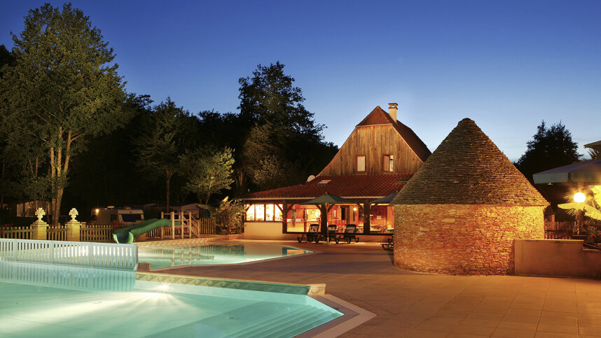 Le Moulin du Roch is set on natural sloping woodland in the grounds of a former water mill and the Dutreux family have worked hard to ensure that it is an attractive and well run family campsite, Now run by Olela a small chain of campsites. Only 10 km. from the charming medieval town of Sarlat and 52 km. from Périgueux – the capital town of the Périgord region – this campsite is well situated for exploring the natural, historical, cultural and gastronomic riches of the Dordogne.