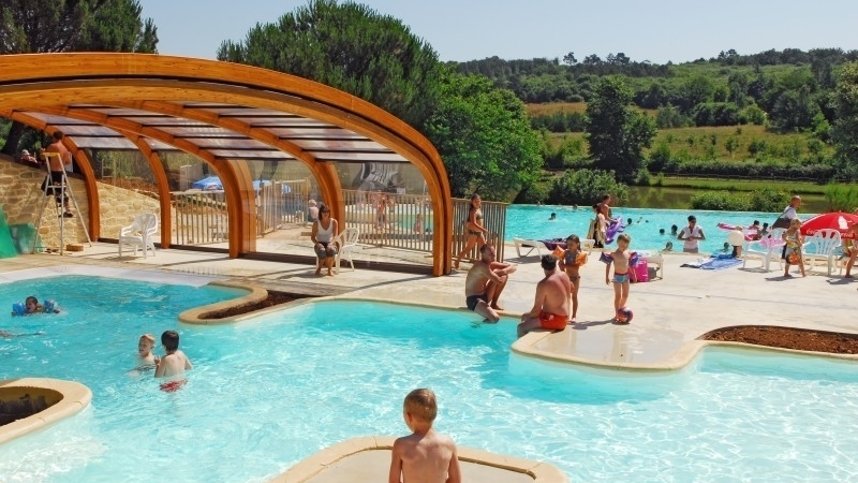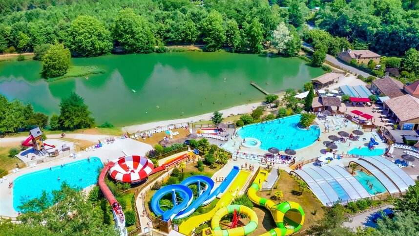 Toilet facilities, built to harmonise with the surroundings, include accessible facilities. Washing machines, dryers. Motorhome services. Excellent restaurant. Bar. Snack bar/takeaway. Large, heated swimming pool with flumes, slides, jacuzzi and paddling pool. Rustic play area. Children’s club. Multisports court. Boules. Tennis. Archery. Roller skating. Mountain bike hire. Canoeing. Fishing and swimming in lake. Free WiFi over part of site. Evening entertainment (July/Aug). All facilities are open all season. Max. 1 dog.