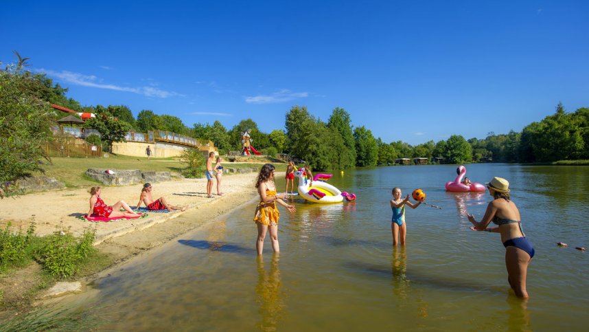 A rural, lakeside site in woodland, now owned and run by the FranceLoc company, le Moulinal offers activities for campers of all ages. Of the 313 grassy pitches, 55 are available for touring units and these are spread amongst the site’s own mobile homes, chalets and a small number of Dutch tour operator tents. Most pitches are flat, grassy and have 6/10A electricity, but vary considerably in size (75-100 sq.m). The five acre lake has a sandy beach and is suitable for boating (canoe hire available), swimming and fishing. Ambitious, well organised animation is run throughout the season including craft activities and a children’s club.