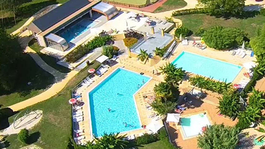Two sanitary blocks equipped with accessible facilities, showers, private washing cubicles and facilities for babies. Laundrette: Washing machines, dryers and iron. Shop. Bar. Restaurant and Takeaway. Heated outdoor pools. Indoor pool with Spa, Sauna and Hammam. Playground area. Football field. Tennis court. Sports field. River access. Kids club, sports activities and entertainment programmes in July and August. Bicycle hire. Canoe trips. Fishing. WiFi: low-speed free, high-speed charged.