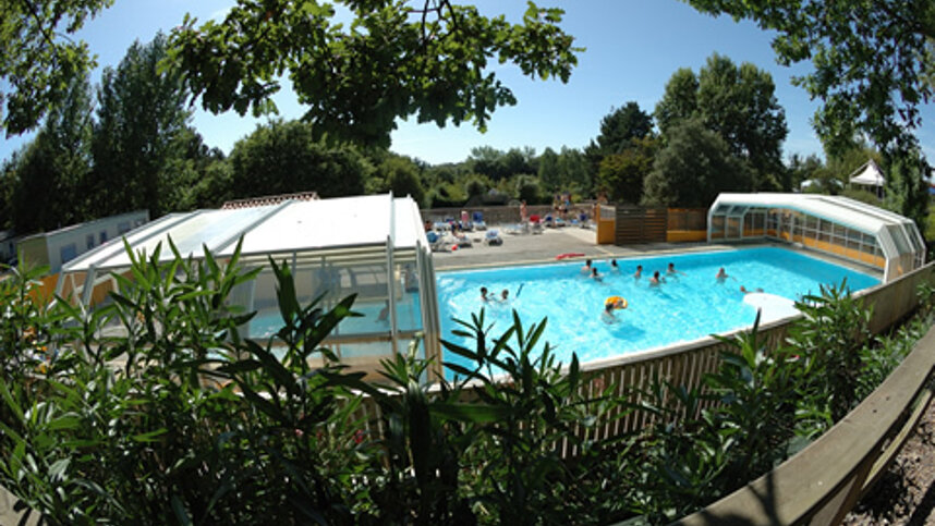 Camping le Paradis can be found close to the popular seaside resort of Talmont-Saint-Hilaire, between Jard-sur-Mer and the larger resort of Les Sables-d’Olonne. Talmont makes up part of the Côte de Lumière, and its 3.5 km. sandy beach (Le Veillon) has longstanding Blue Flag accreditation. There is a free shuttle bus from the campsite to the beach. Pitches here are of average size with limited shade. A number of mobile homes are available to rent. On-site amenities include a covered, heated pool and an all-weather sports pitch (basketball, volleyball, football). The site becomes more active in peak season with a daily children’s club and frequent activities for all the family (including evening entertainment).