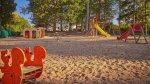 Village Center le Parc des Allais is a mainly residential site situated in the heart of the Loire Valley. It is convenient for exploring the surrounding countryside and the region’s world class châteaux. The site lies within a 16-hectare park and borders a small lake. It has a large indoor and outdoor pool next to the bar/restaurant, with a large terrace overlooking the Vienne River. Of the 241 pitches there are only about 10 small pitches for touring (10A electricity), all in a group by the entrance. They are separated by hedges and a variety of trees give good shade.