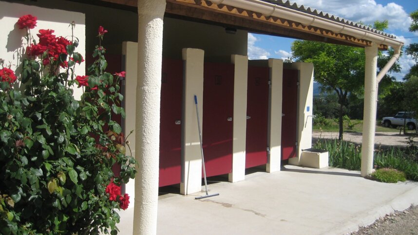 Accessible sanitary facilities in the same building as other camper's. Laundry facilities, Fresh bread available at the campsite17-04/12-10 Groceries (limited) Pizzeria (15-05/12-10) Takeaway meals, Communal barbecue area, Children's playground, Table tennis table, Jeu de boules alley(s), Entertainment programme (high season), WIFI, Pets allowed.