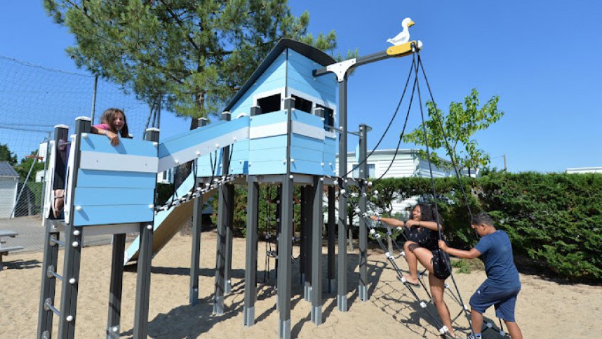 Le Pavillon Bleu is a member of the Atlantique Pellerin Vacances group and is located in the southern Vendée, in the lively resort of La Faute-sur-Mer, near Aiguillon and La Tranche-sur-Mer. This is a small site – 88 pitches, just 500 m. from a fine beach. On-site amenities include a outdoor swimming pool and paddling pool, as well as a multisports pitch, play area, and sea or river fishing. Pitches here are of average size and lacking in grass. All have electrical connections (3/6/10A). A wide selection of mobile homes, chalets and caravans are available to rent. The site has no bar, restaurant or takeaway, but there is a good alternative on the opposite side of the road.