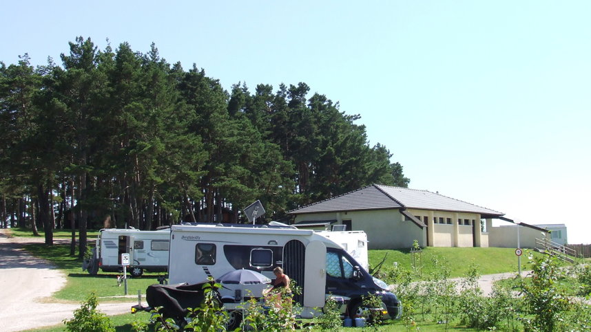 With views across the Auvergne countryside, this pleasant site on the edge of a small traditional French village is a comfortable and convenient break in your journey when using the A75 motorway. The interesting village has a bar and a small restaurant serving inexpensive meals. There are 90 touring pitches, all with electricity (6A), 20 also have water and drainage. Some are level with views over the village, some on the hilltop among trees and others on sloping, grassy land with panoramic views of the Monts du Cantal and the distant volcanic mountains.