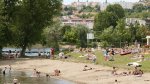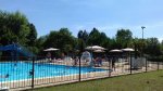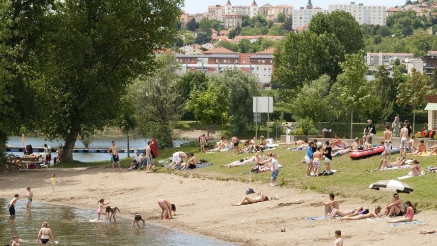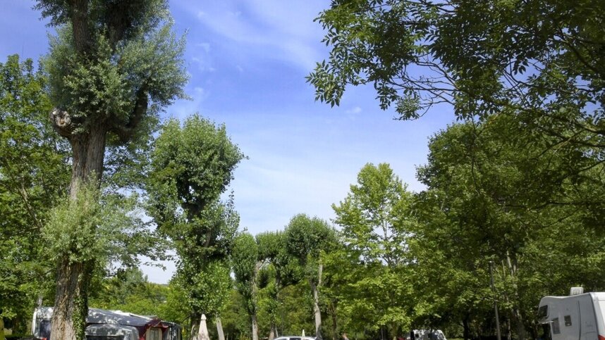 A well equipped municipal site, le Pré des Laveuses is adjacent to a boating and fishing lake and its beach, alongside the River Allier, close to Cournon-d’Auvergne and the A75 autoroute. This site will be busy in the high season due to its public bar/restaurant, heated swimming pool with flume, nearby activities and its proximity to Clermont-Ferrand. There are 100 large, grassy, mostly level touring pitches (all with 10A electricity, long leads advised). They are in small groups separated from other groups by neat low hedges. Mature trees give shade to some pitches and many have pleasant views over the surrounding hills and the town, although hedging obscures views of the lake and river.