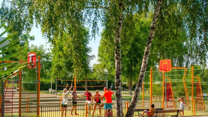 The main, heated toilet block has usual facilities including accessible facilities. Laundry facilities. Additional units by lake or reception. Motorhome services. Bar/restaurant (weekends 1/4-30/6 and 1/9-30/9, daily July/Aug). Outdoor pool (July/Aug) and heated indoor pool (all season). Playground. Boules. Minigolf. Canoeing. High season animation for children. Excursions, canoe trips and competitions. Library. Archery. Fitness trail. Fishing. Only gas barbecues are permitted. WiFi free. Pets allowed.
