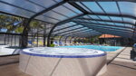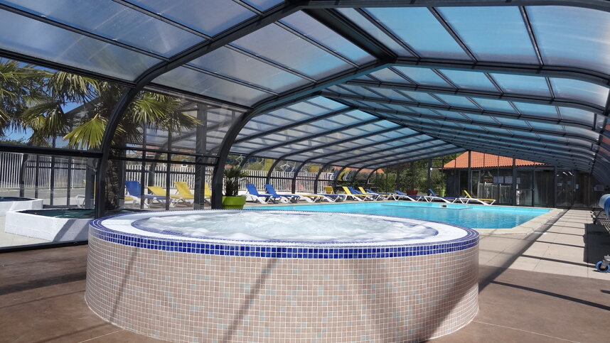 Two sanitary blocks are equipped with showers, private washing cubicles and facilities for babies. Accessible facilities, Washing machine and dryer. Bar. Snack and takeaway. Heated covered pool with jacuzzi and paddling pool. Activity and entertainment programmes (during school holidays). Playground including zip line and bouncy castle. Many shops in centre (800m). Canoe trips. Fishing. Internet access and WiFi at the snack bar (free).