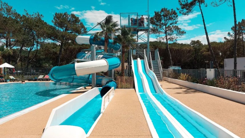Seven toilet blocks of a high standard and very well maintained have washbasins in cabins, large showers, baby rooms and accessible facilities. Motorhome services. Washing machines and dryers. Fridge rental. Supermarket. Bars, restaurants and takeaways. Indoor pool, jacuzzi and sauna (charged July/Aug). Outdoor pool area with jacuzzi and paddling pool (15/6-15/9). Multisports pitch. Play area. Bicycle hire. Beach access. WiFi throughout (charged).