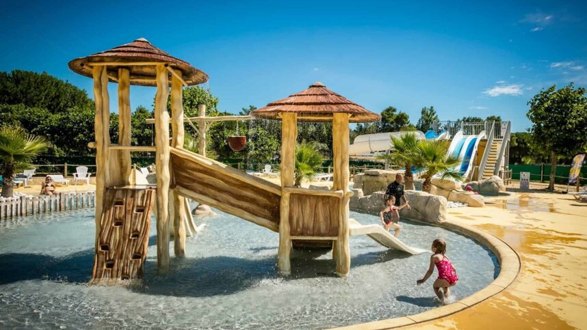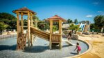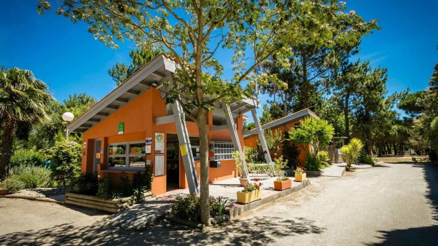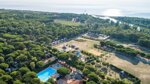 The two modern toilet blocks are well maintained and include washbasins, mainly in cabins. Accessible Units. Washing machines and dryers. Motorhome services. Shop. Small bar/restaurant and takeaway (1/5-15/9). Outdoor pool and paddling pool. Games room. Boules. Minigolf. Football pitch. Bicycle hire. Play area. Trampoline and Bouncy castle. Children’s farm. Kids’ club and entertainment in high season. Free WiFi.