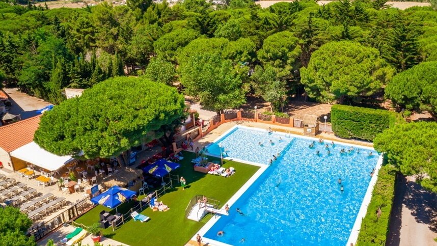 Le Sainte Marie is a delightful family campsite situated on the Mediterranean coast, some 10 km. north of Perpignan and 2.5 km. from a (supervised) sandy beach with easy access and free parking. The 80-100m² grassy pitches, all with electricity, are enclosed by hedges and enjoy either full or partial shade. In the centre of the site is the outdoor swimming pool with diving board, a perfect spot to relax under the trees, and on Saturday evenings the pool is open until 23.00. This 15-hectare site has an abundance of species of trees and flowers, and is ideal for families with children.