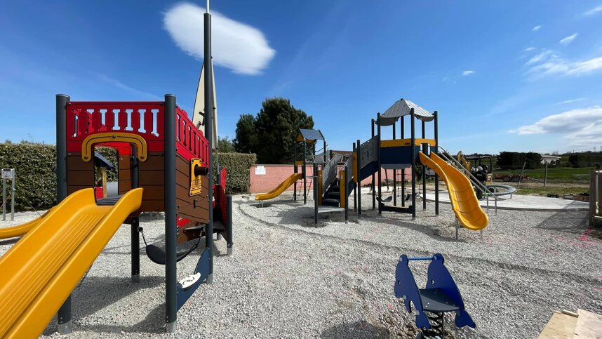 Excellent, clean toilet block with facilities for babies and accessible facilities. Bar, TV/snack bar, small shop (all season). Swimming pool complex with outdoor pool, covered pool, water slide and 2 paddling pools. Play area. Bicycle hire. WiFi (free). Motorhome services. Trampolines. Twice weekly market in high season. Entertainment for under 10s and excursion programme (July/Aug).