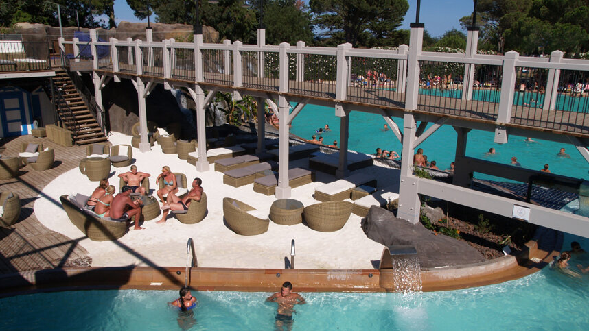 Le Soleil is an attractive site with direct access to the sandy beach, but also with an impressive heated pool complex. It is a busy, popular, family owned site which over the years has developed into a small village. It has over 800 pitches of ample size of which 132 are used by tour operators and a further 430 for touring units, on sandy/grassy ground and with a mixture of tall trees and shrubs providing light shade. All have electricity (6A) and 24 are fully serviced. Caravans sometimes need to take care on the narrow access roads. The site has a wide range of amenities, including an impressive pool complex with activities and entertainment for all the family. All facilities are open when the site is open.