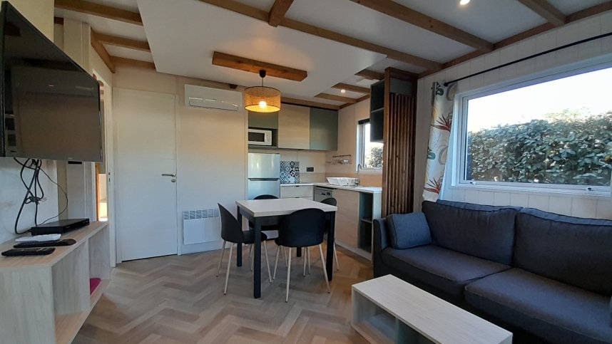 Stays can be as lively or laid back as you wish, as you can take a dip in the pool and relax on the surrounding sun loungers, or you can play a game of boules. In the summer, children will not be short of activities either, as there is a dedicated children's pool with a fountain and slide and on site-organised entertainment. Younger children and teens have dedicated entertainment throughout the day, with frequent sports activities and crafts events to get involved with. After a day of exploring the surrounding area or enjoying the on-site activities, the onsite restaurant serves international dishes such as pizza, or you can enjoy a delicious cooked fish dish.