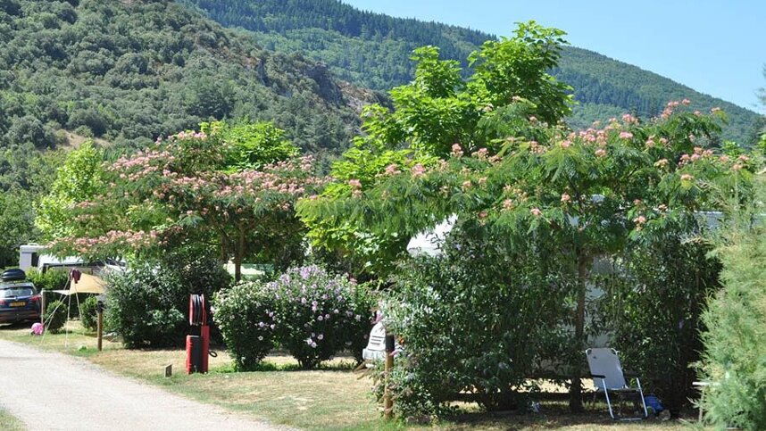 Eighty-eight of around 110 touring pitches have water, 10-16A electricity and drainage. A simple bar area has been created above the pool complex, which is very attractive. The Jaur river running alongside the campsite has a number of little cascades, is a great fishing spot and a new sandy beach has been made.