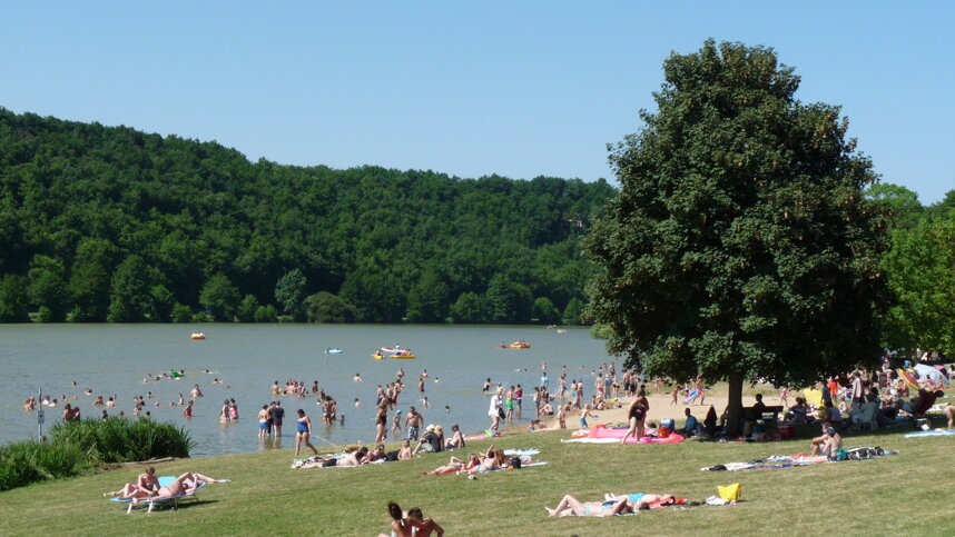 This former municipal site has been refurbished to a high standard and is operated by the owner/manager. There are 60 touring pitches, all with 10A electricity and individual water tap; four have hardstanding for motorhomes. Since our last visit, new trees, bushes and flower beds have been planted, which are now coming into maturity. The site remains smart and very well-tended. The site is in the pleasant countryside above a lake and next to a rapidly developing Base de Loisirs with watersports provision and a bar/restaurant.