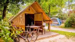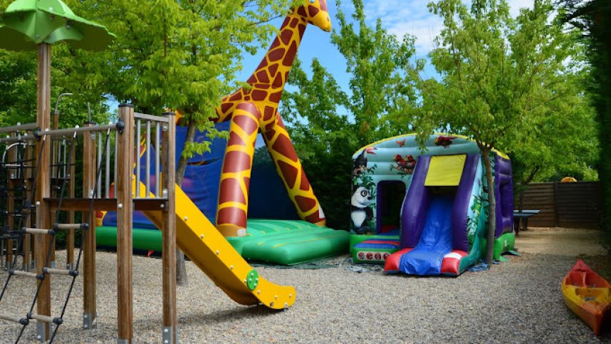 The heated toilet block has showers washbasins and wc’s. Accessible facility. Baby room. Chemical toilet point. Dish washing area. Laundry. Motorhome service point. Bread to order. Bar. ice Creams. Snack bar. Restaurant. Bar. Pizzeria. Take-away. Microwave. Freezer for ice packs. Library. Tourist information. Wi-Fi all site charged. Heated indoor and outdoor swimming pools and toddler pool. Waterslides. Jacuzzi. River swimming. Barbecues not allowed on pitches - in special area only. Dogs allowed. Multi-sport pitch, Fishing. Cycling. Walking. Excellent children's play area. Bouncy castle. Trampoline. Volleyball. Table tennis. Boules area. Basketball. TV room. 4 electric vehicle charging points. Defibrillator. Dogs allowed, dog area. Car and Bike hire. Shop and public transport nearby.