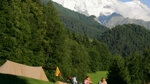 Saint Gervais is a pretty spa town in the picturesque Val-Monjoie valley and this site is 2 km. from its centre, with wonderful views of Mont Blanc. It is 22 km. west of Chamonix and centrally located for discovering this marvellous mountain region. Nestled among the mountains, this sheltered, well equipped site provides 151 flat, grass pitches of a good size. About half have shade and there are 100 with 10A electricity (long leads may be needed). The remainder are on terraced ground and are used for tents. Third generation hosts, Stéphane and Sophie, will welcome you to the site and their passion for this area is infectious. An original Savoyard granary, converted into a superb two-storey chalet and finished internally to a very high standard, is for rent.