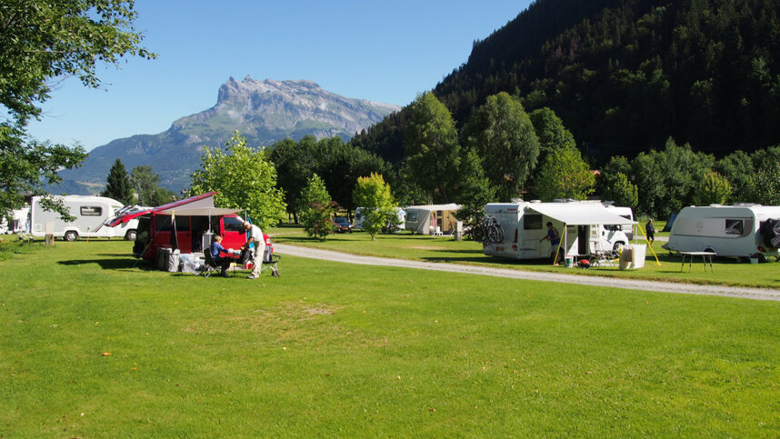 This is a good site for large motorhomes. There is no on-site entertainment programme, but a wealth of information about the area and the activities available nearby is provided at reception, where you will be helped to plan your itinerary. The region is good for walking and there is a bus service into Saint Gervais, from where there is a frequent shuttle bus to its spa, and a tramway to the Mont Blanc range. There is also good public transport between the town and Chamonix.