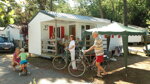 The name gives a clue to its location! This well-run site is on the edge of a pine forest and just a 600 m. walk to the sea. The 255 pitches are mainly occupied by mobile homes, with 90 for rent and 50 owned by a small British tour operator, but there are 52 mainly level touring pitches in groups and divided by hedges. Forty have 10A electricity, water and drainage whilst a few are tucked away among the trees and are ideal for smaller tents. Quiet in low season, the site comes to life in July and August with activities arranged for all the family.