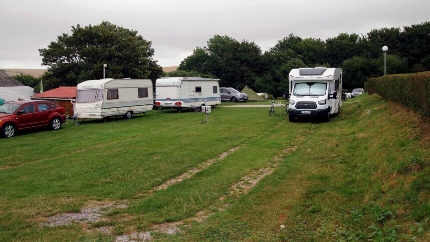 This small site on the Côte d’Opale is very convenient for the Calais ferries and Eurotunnel as well as being just a few minutes from the A16. The 41 pitches are terraced and set on open ground separated by low privet hedging. There is some shade around the perimeter and all pitches have electricity (6/10A Europlug). Just two kilometres from the beach, the pitches at the top of the site have spectacular views over the coast towards the Channel, Cap Blanc-Nez and the English coastline. Most pitches have hardcore wheel tracks.