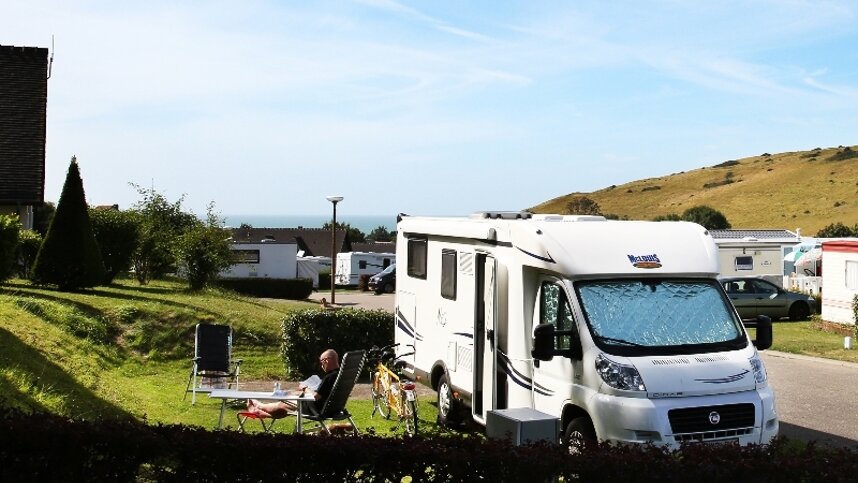 Camping Les Goelands, Arès, Gironde is located in a wood. It is a very clean and attractive site set in the seaside hills. Just a short walk to a pebble beach with nice views. This is a very well-kept site with cafe that is open lunchtime and evenings in June. Free Wi-Fi. Near to dog friendly beach. The site has 60 touring pitches with 16 amp hook-up point and 67 seasonal ones. There are also 3 lodge tents available to hire. Most of the generous sized pitches are sloping with a hard standing area for cars, water and electric hook-up point. Each motorhome pitch has its own water supply and electric along with a grey water drain.