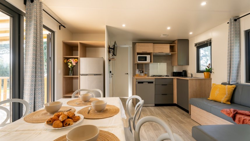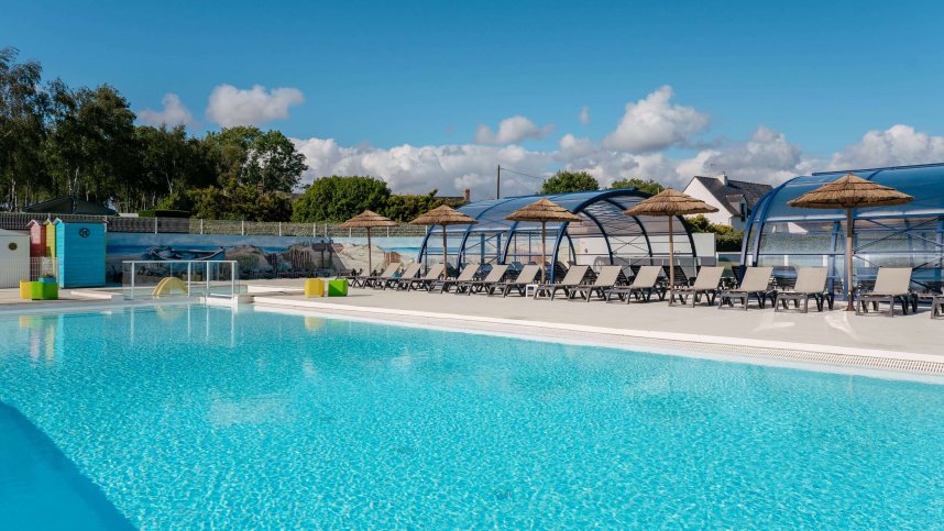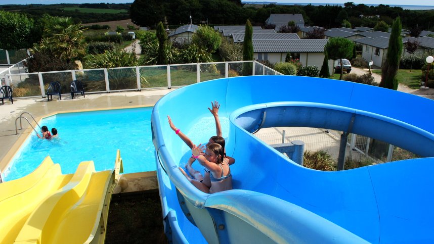 The good toilet block includes accessible facilities . Washing machine and dryer. Shop (all season). Bar (July/Aug). Pizza and rôtisserie vans visit (high season). Covered swimming pool (all season). Outdoor pool and slides (1/6-15/9). Children's play area, Multisport court. Bicycle hire. Mini golf. Kids club, Bouncy castle, WiFi in bar (first 30 mins. free). Pets allowed.