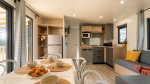 This is a long established campsite that offers a variety of well cared for pitches (48 for tourers, all with 16A electricity). Most are shaded by mature trees and, unusually, some are triangular in shape. Access could be tricky for larger units. The toilet facilities have been refurbished to a very high standard, complete with soft music and potted plants. A comfortable lounge contains a small library, board games and a television. The site’s pool complex is impressive with a heated, covered pool, an open pool with slides and a paddling pool. Many sporting facilities are provided, and in high season there is entertainment and activities for children.