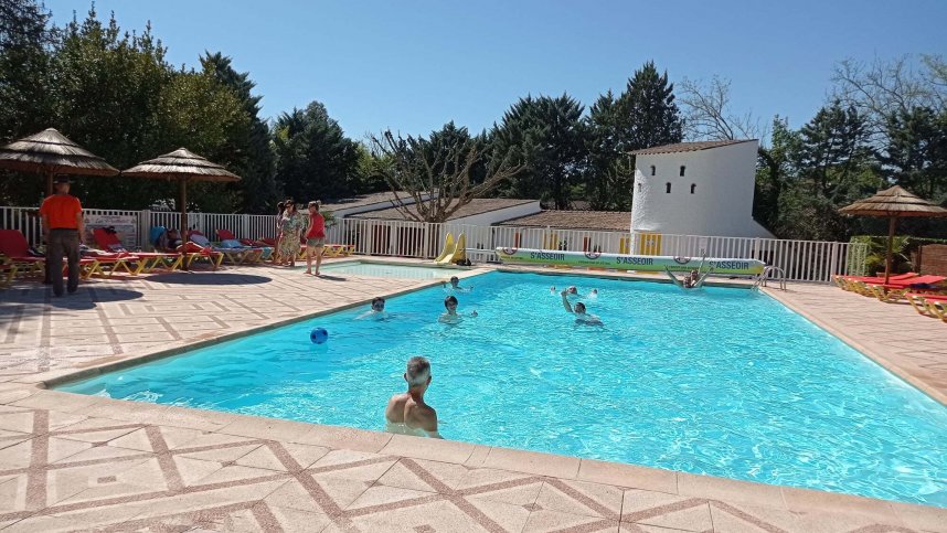 Modern sanitary facilities with hot showers, private bathroom and baby room. Shop and bread service. Bar/restaurant. Takeaway. Swimming pool with slide. Canoeing. Volleyball. Play area. Activities and entertainment. Mobile homes, chalets and equipped tents to rent. No charcoal barbecues in July/Aug. WiFi in bar/pool area (free).